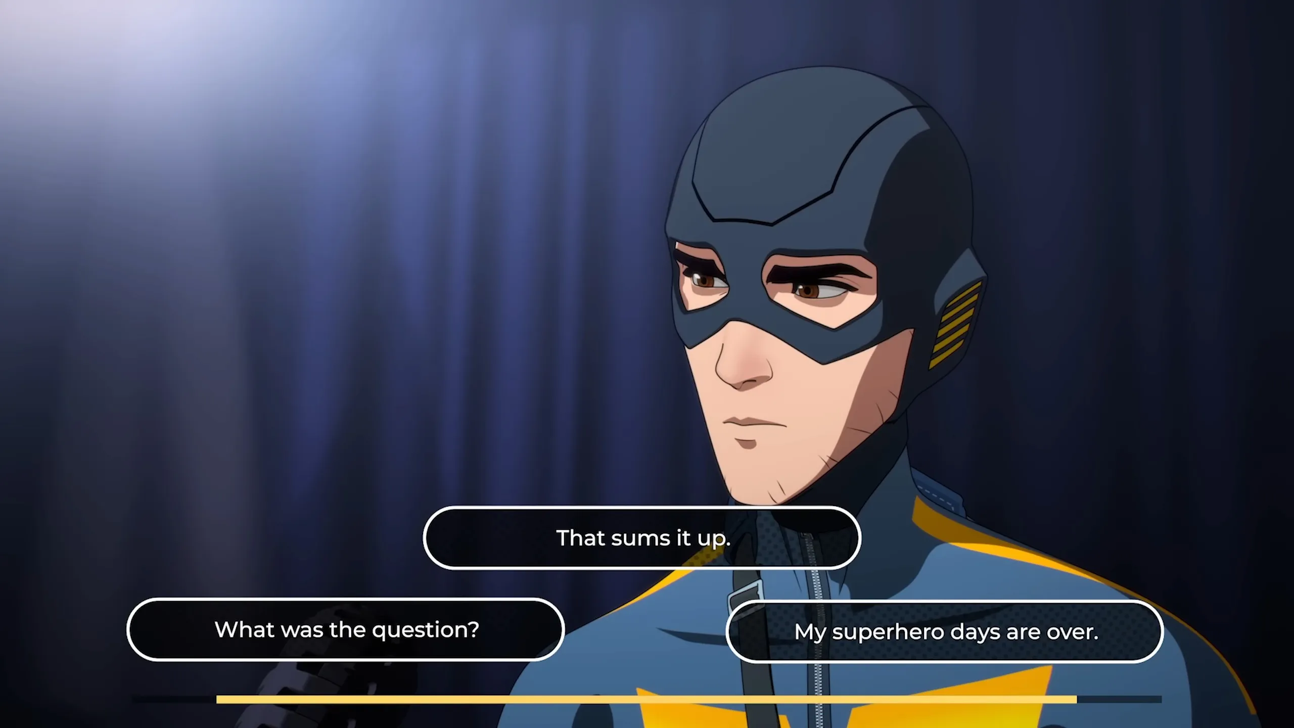 This is, of course, due to the story’s branching narrative. Like the Telltale games embedded in Dispatch’s DNA, your responses as Robert affect the plot, and even a simple conversation between two characters takes much longer to write and record when you factor in all the possible responses. This also means it’s difficult to get people’s schedules to align, so Paul recorded his lines alone in the booth with other characters playing in his ears. “It was honestly a very confusing process for me, as a performer,” Paul says. “But a challenging and rewarding one, as well.”